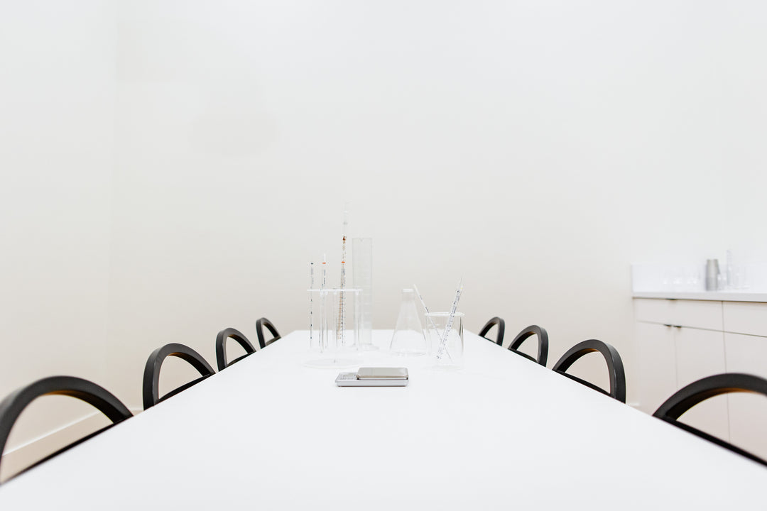 The Sensory Room is ideal for intensive wine sensory study, tasting or blending sessions. The room is finished with white walls, neutral light, white tables and countertops and equipped with stemware, spittoons and blending supplies such as pipettes, graduated cylinders and blending flasks.